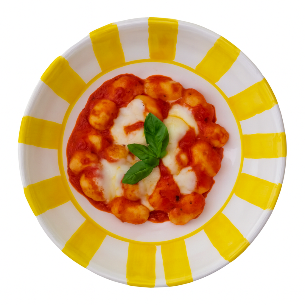 Pour accompagner une belle assiette vintage, rien de tel qu’une recette typiquement italienne. Les gnocchi alla sorrentina — ces petites boules de pâte fondantes nappées de sauce tomate et gratinées au four — incarnent à la perfection la chaleur de la table italienne.